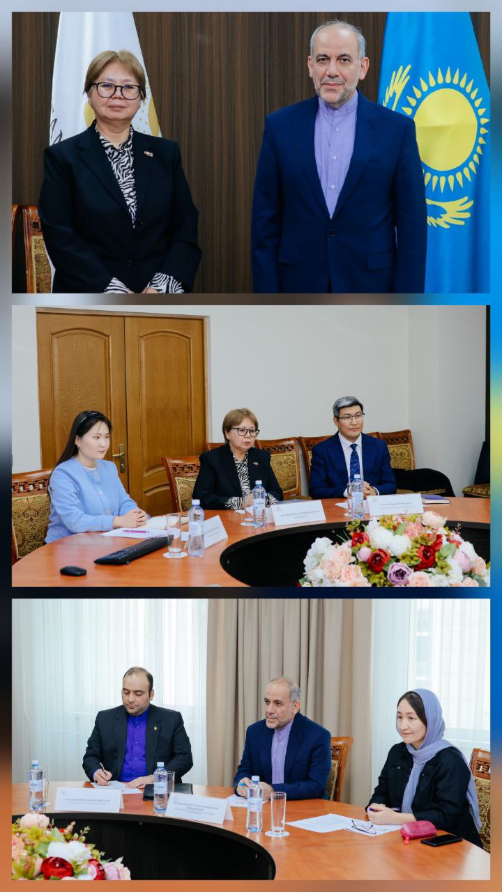 چهارشنبه ۱۴ آبان ۱۴۰۴، جناب آقای علی‌اکبر جوکار، سفیر کشورمان در جمهوری قزاقستان، با سرکار خانم دکتر انار تورمخامبتوا، رئیس دانشگاه پزشکی آستانه، دیدار و در خصوص توسعهٔ روابط دوجانبه به بحث و تبادل نظر پرداختند.