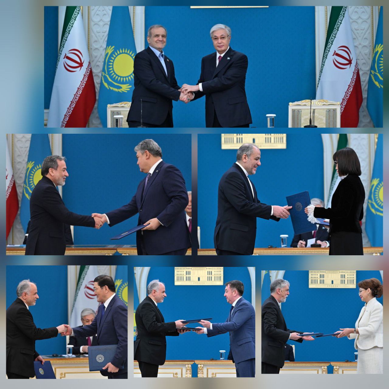 11 декабря 2025 года — Президент Республики Казахстан Касым-Жомарт Токаев и Президент Исламской Республики Иран доктор Масуд Пезешкиан провели двустороннюю встречу в узком составе в ходе которой были обсуждены ключевые вопросы двустороннего сотрудничества. Затем главы государств приняли участие в церемонии обмена документов.