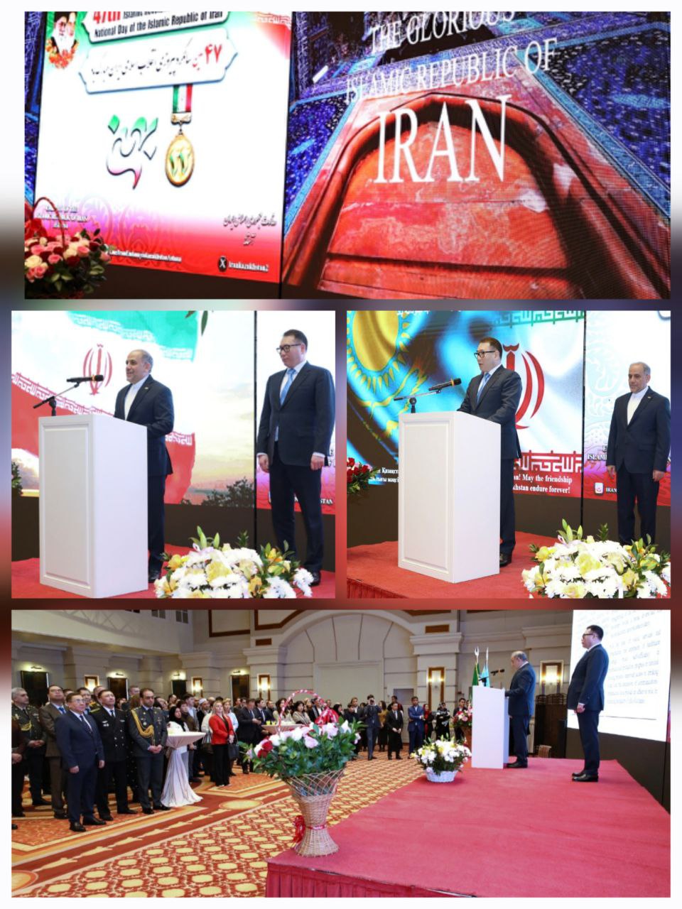Торжественная церемония по случаю 47-й годовщины Победы Исламской революции в Иране и Национального дня нашей страны состоялась вечером во вторник, 10 февраля 2026, при участии Али Акбара Джокара, Чрезвычайного и Полномочного Посла нашей страны в Республике Казахстан, Армана Шаккалиева, Министра торговли и интеграции, послов и дипломатов-резидентов, других руководителей Министерства иностранных дел Республики Казахстан, представителей средств массовой информации, учреждений культуры и искусства, а также руководителей государственных и негосударственных организаций и прошла в отеле Rixos.